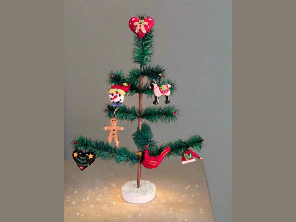 As árvores de Natal de penas de ganso alemãs são uma das primeiras árvores reutilizáveis, e os colecionadores ainda adoram sua aparência delicada e incomum. Essas árvores apareceram pela primeira vez no final do século XIX e início do século XX, com penas reais enroladas em galhos de arame para imitar galhos verdes. Os galhos são bem espaçados, o que os torna perfeitos para exibir pequenos enfeites de vidro e velas ou prender pássaros.