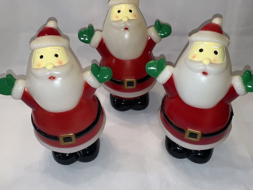 Colecionadores gostam de tinta forte, detalhes faciais claros e cordões originais, já que tinta desbotada e bases reconectadas diminuem um pouco o valor. Papais Noéis maiores, com um metro de altura ou mais, fazem a maior declaração e podem ancorar uma exibição externa inteira. Peças combinadas, como renas, trenós e bonecos de neve, constroem uma pequena sensação de vilarejo à qual muitas famílias voltam ano após ano. Um molde clássico de tamanho médio para o Papai Noel em boas condições pode ser vendido por cerca de US $ 125 hoje.