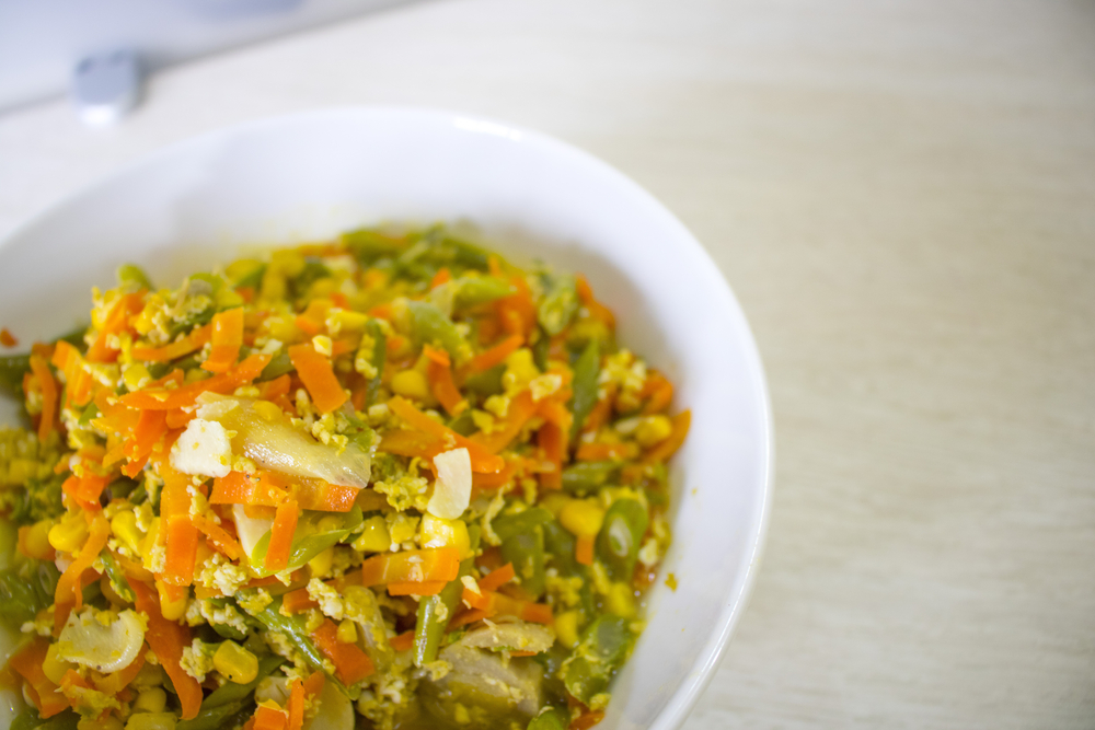 Sobras de arroz com legumes e ovo frito