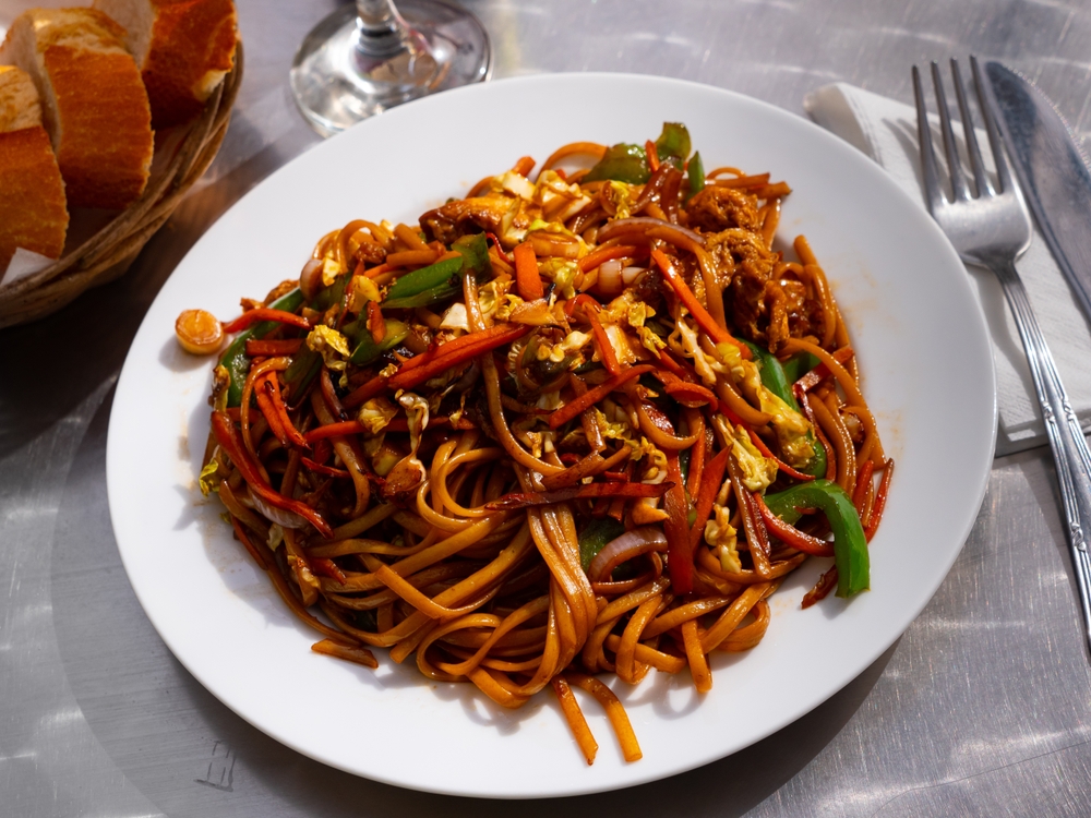 Macarrão de amendoim frito com quaisquer vegetais