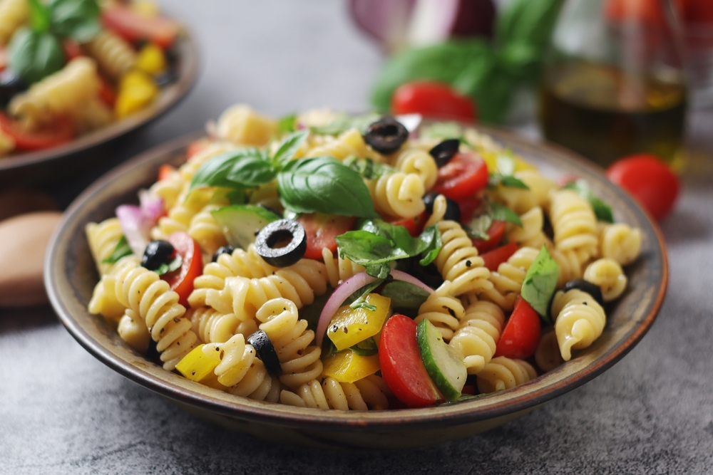 Salada de macarrão com vegetais é uma refeição fácil e fria que não precisa ser aquecida. Esta refeição funciona bem para a escola ou trabalho e é muito personalizável. Você pode usar todos os vegetais que tiver em mãos e até adicionar algumas proteínas, como frango grelhado ou tofu. É uma ótima maneira de aproveitar as sobras e fazer um almoço recheado e sem calor.