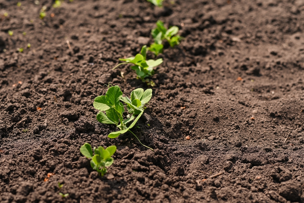 A semeadura direta é importante porque as raízes da ervilha são sensíveis a perturbações. Depois de plantadas, rapidamente enviam raízes para baixo e brotos para cima em busca de apoio. Fornecer uma treliça ou cerca cedo permite que as vinhas subam à medida que crescem. O ar fresco da primavera ajuda as flores a se firmarem adequadamente, o que leva a frutos mais cheios. O plantio precoce geralmente resulta em uma colheita mais longa antes que o calor do verão termine a produção.