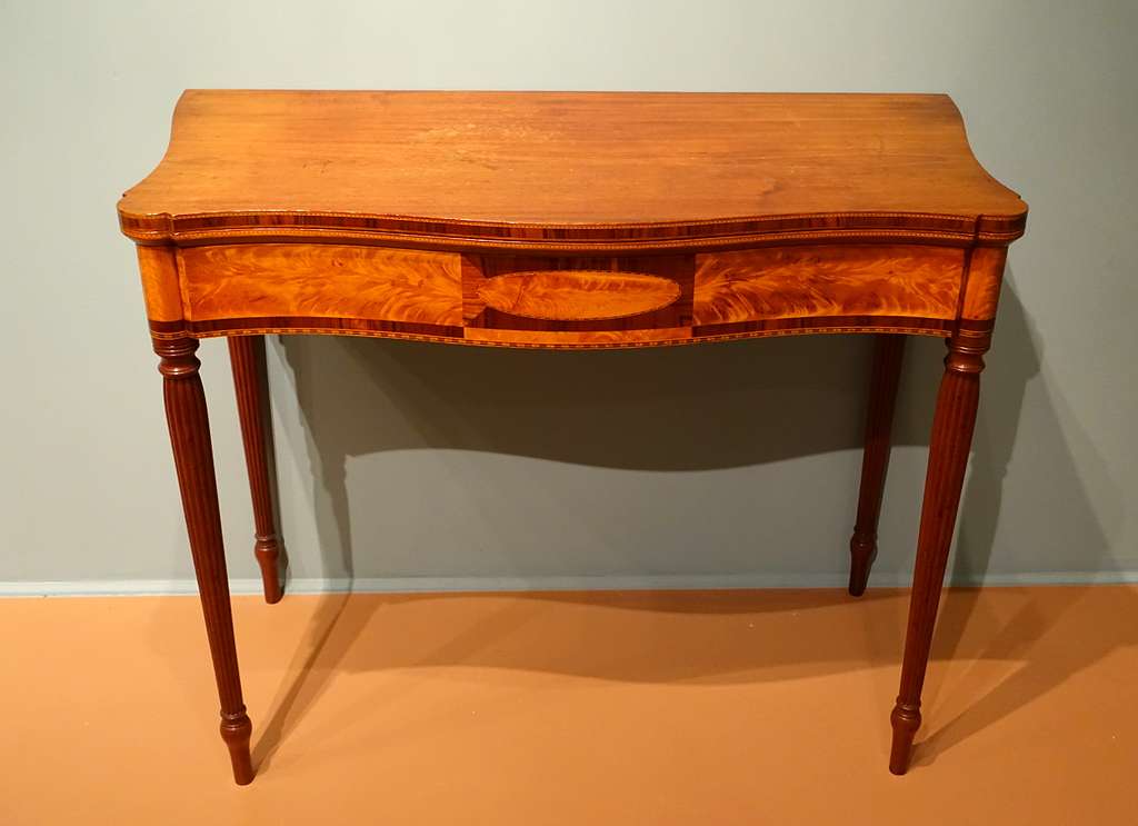 Uma mesa de jogo de mogno incrustada no estilo Sheraton pode variar de US$ 1.500 a US$ 4.000, dependendo do acabamento e da condição. Empresas como Thomas Sheraton e Gillows of Lancaster produziram algumas das melhores peças deste estilo. As peças Sheraton são altamente colecionáveis ​​devido à sua elegante simplicidade e artesanato.