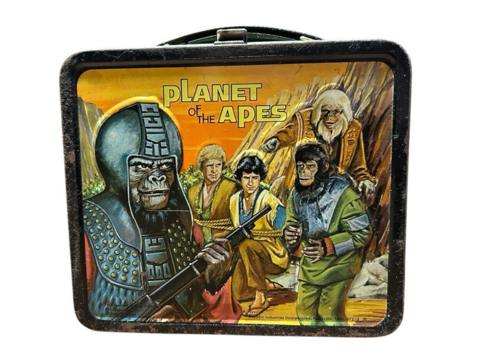 Produzido em 1963 com arte da série Planeta dos Macacos, este design de Aladdin traz a marca do filme para a forma de lancheira. Seu apelo vem dos fãs de filmes de ficção científica e das multidões de recordações vintage. Versões em boas condições podem custar cerca de US $ 200 ou mais. Caixas com cores fortes e desgaste mínimo costumam receber mais atenção.