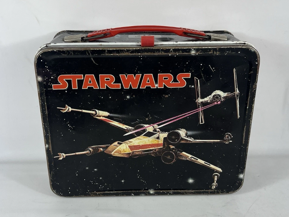 Produzida em 1977 com arte da era original de Star Wars, esta lancheira mostra Luke em seu icônico lutador X-Wing. Os fãs de memorabilia de filmes acham esta peça atraente por causa de sua ligação com uma grande franquia. Caixas usadas em bom estado podem ser vendidas por cerca de US$ 200 ou mais em mercados de colecionadores. Peças térmicas originais agregam valor modesto.