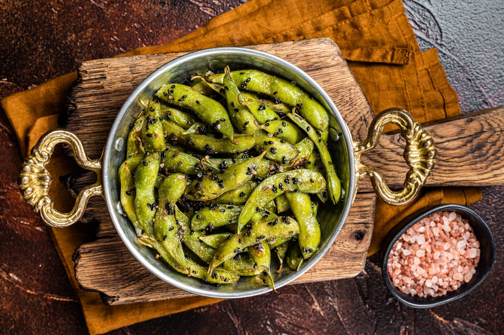 Edamame com gergelim e sal marinho
