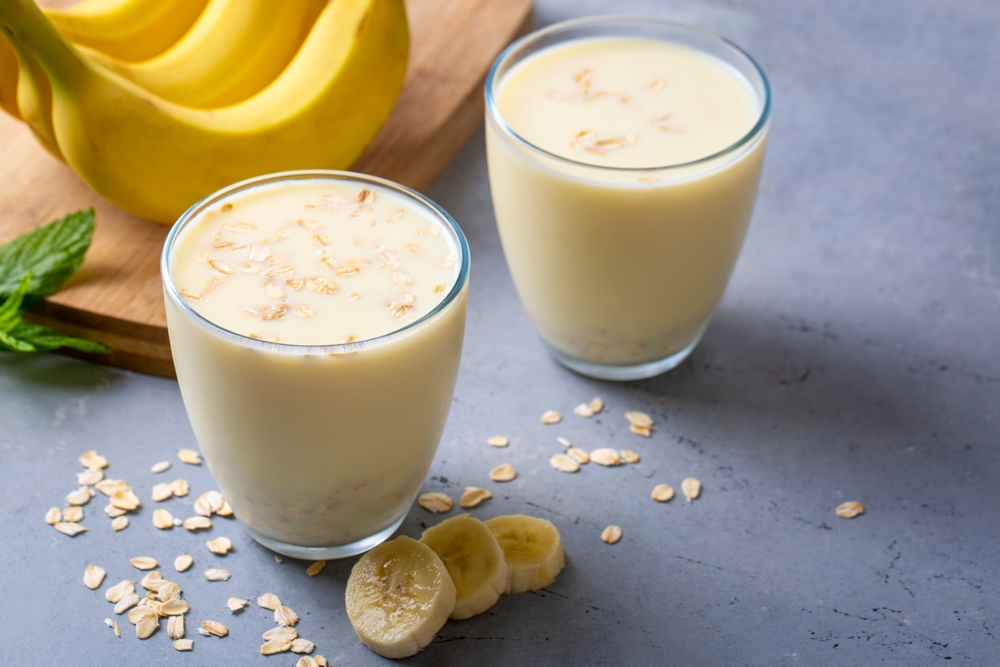 Smoothie de proteína espessa com leite e aveia