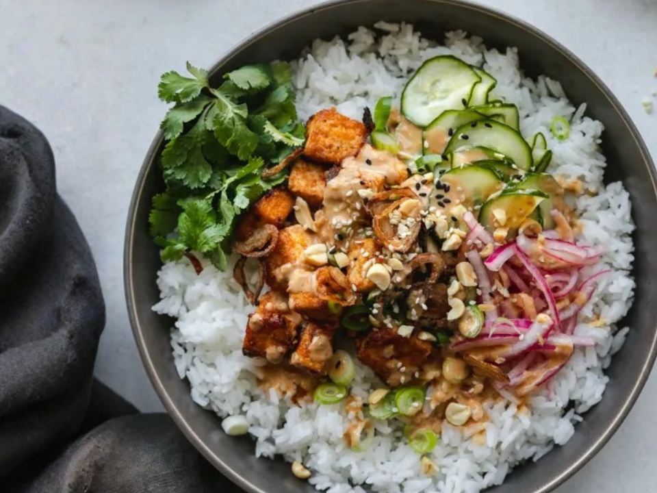 Uma tigela de tofu pode parecer uma mini refeição porque contém proteínas, além de crocante e molho, e não apenas cubos simples. O tofu firme dá uma mordida satisfatória e o molho acrescenta sabor, fazendo com que pareça um prato de verdade. Legumes crocantes acrescentam volume e textura que tornam a tigela mais saborosa. Esta também é uma ótima opção à base de plantas para um lanche recheado.