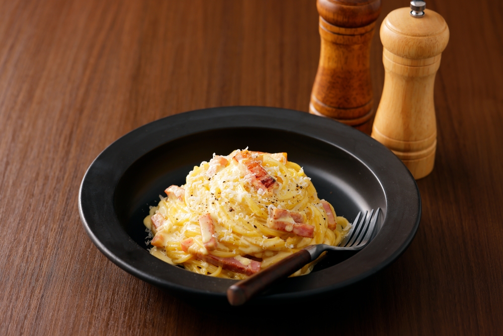 Para Carbonara, você precisará de 200g de espaguete, 2 ovos grandes, meia xícara de queijo parmesão ralado, meia xícara de pancetta e 1 colher de chá de pimenta preta moída na hora. Cozinhe o espaguete conforme indicado na embalagem. Em uma panela, cozinhe a pancetta até ficar crocante e retire do fogo. Em uma tigela, misture os ovos, o queijo e a pimenta. Misture o macarrão quente com a mistura de pancetta e ovo até ficar cremoso e sirva.