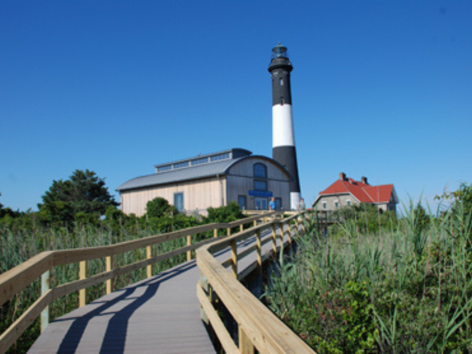 O Farol de Fire Island, no extremo leste do Parque Estadual Robert Moses, em Nova York, é uma escolha forte quando você quer história sem uma caminhada difícil. Você pode estacionar no Campo 5 e seguir o calçadão por cerca de três quartos de milha até o farol. Uma vez lá, você pode passar um tempo ao redor da estação de luz, caminhar pelos calçadões até a casa de barcos e a baía e depois seguir para o lado do oceano para pegar areia e surfar.