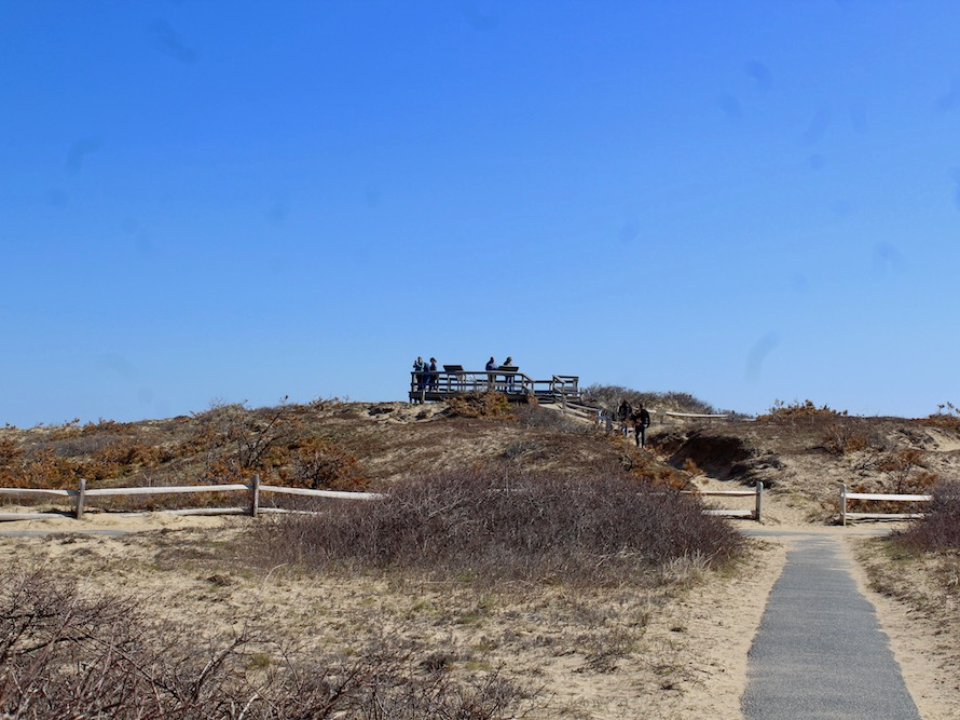 Marconi Beach, em Wellfleet, Massachusetts, funciona bem quando você deseja uma parada que ofereça uma caminhada na praia e no calçadão em um cenário muito diferente. A Atlantic White Cedar Swamp Trail tem cerca de 2 km e inclui um calçadão através do pântano antes de retornar por uma antiga estrada de areia. A praia fica bem próxima, então você pode dividir o dia entre bosques sombreados e vistas abertas para o mar. Essa combinação ajuda o passeio a ser mais rico do que uma simples tarde de praia.