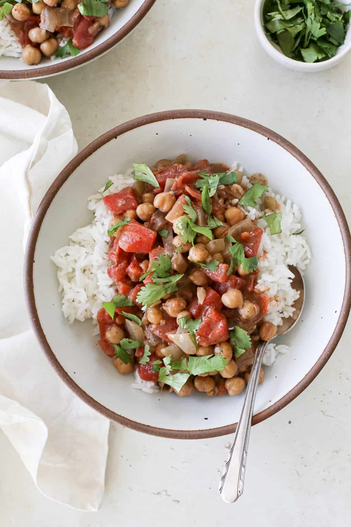 O grão de bico saudável e o leite de coco cozinham em um curry perfumado e sem laticínios que é nutritivo e fácil de fazer. É um prato orçamentário e satisfatório que traz calor e conforto a toda a família a cada colher. Obtenha a receita aqui.