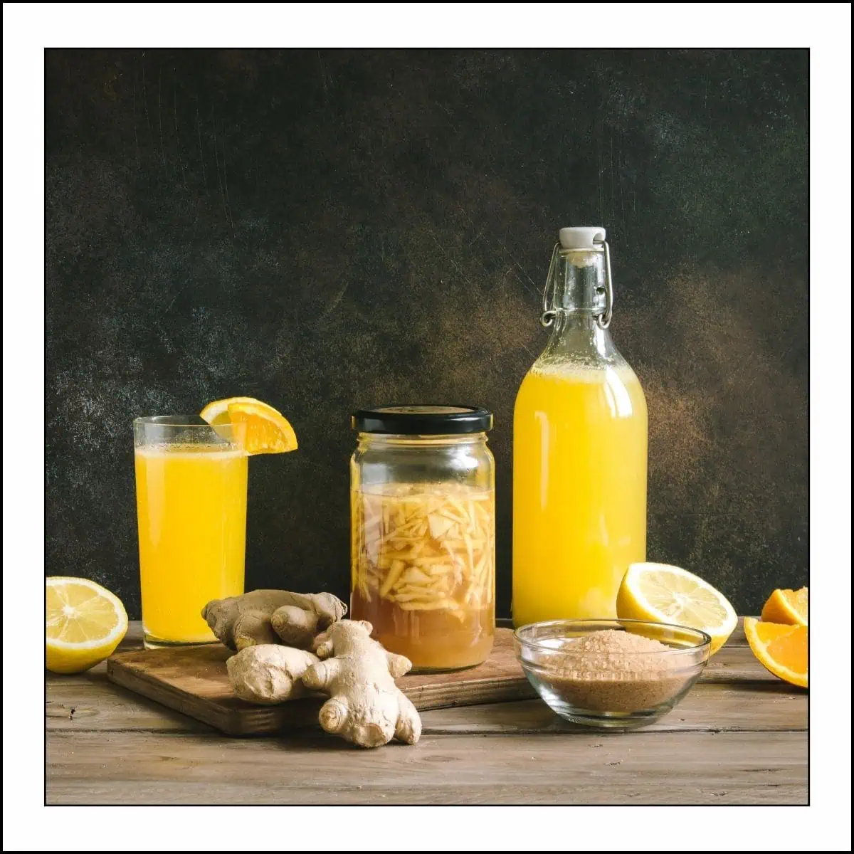 Fazer um refrigerante gasoso de gengibre é surpreendentemente fácil. Você mistura uma porção do seu gengibre ativo com açúcar e uma base aromatizada – como limão, abacaxi ou maçã – e deixa fermentar até ficar levemente borbulhante. Tem um tempero suave do gengibre, um toque de doçura e um brilho natural que é refrescante e brilhante.
