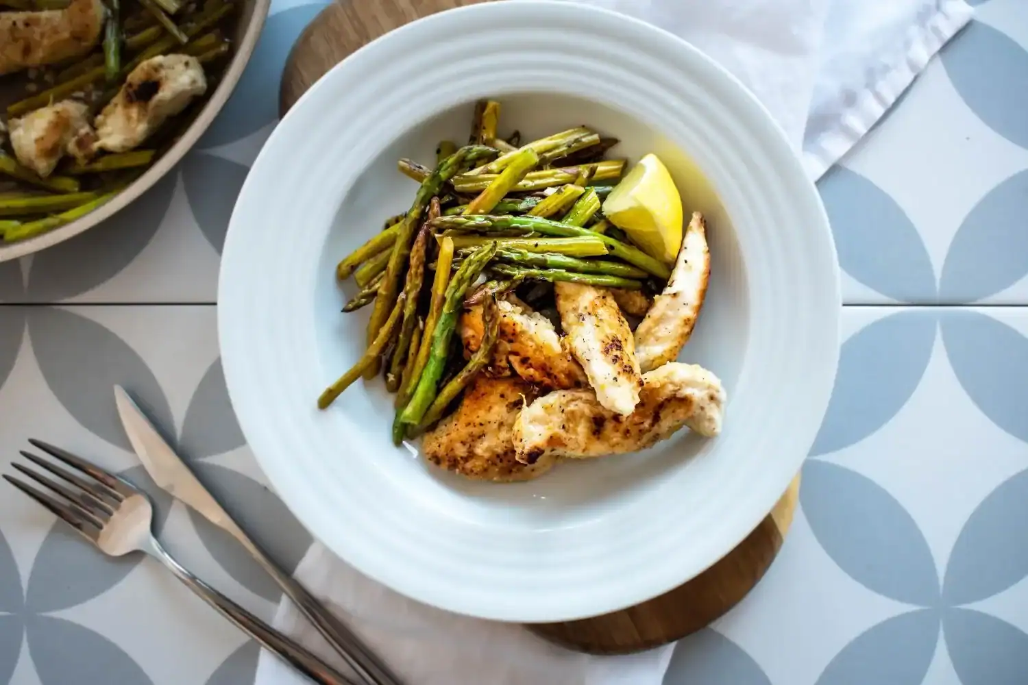 5. Uma panela com limão, alho, frango e aspargos