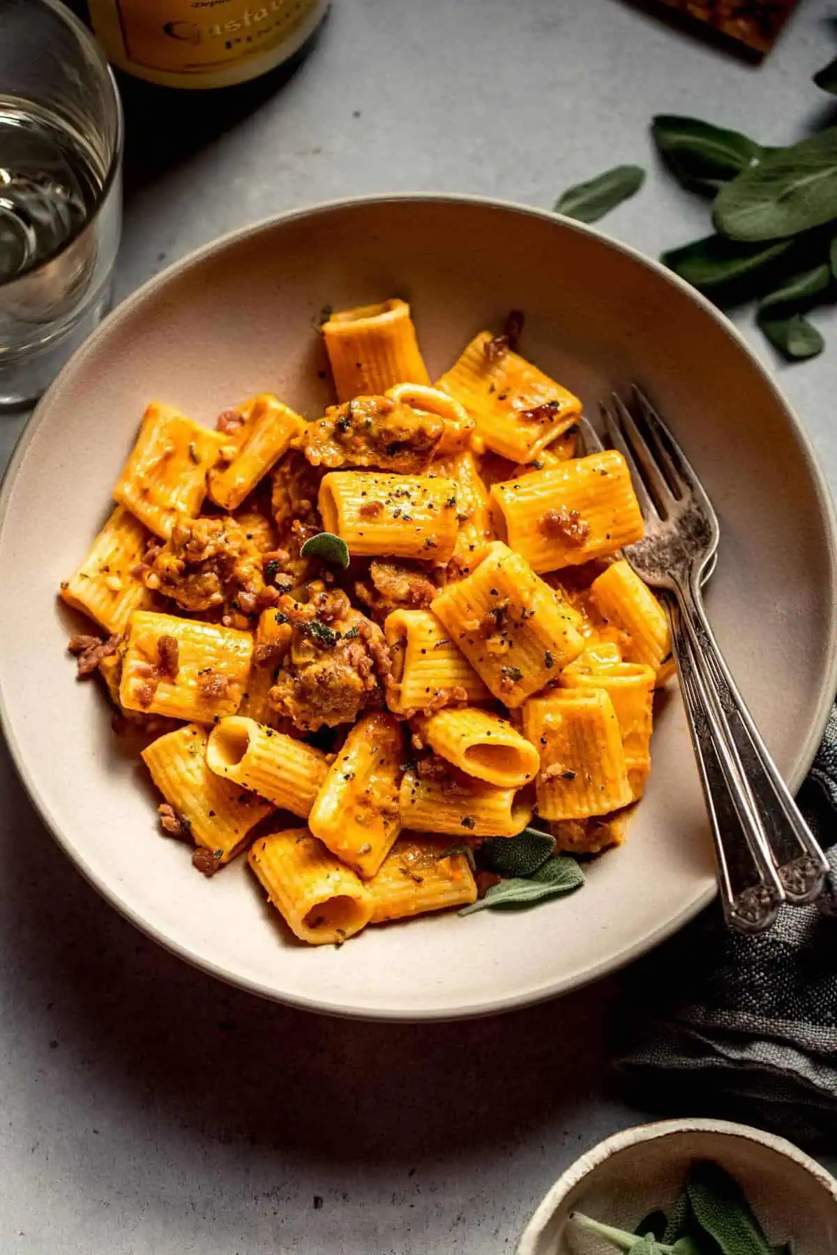 Esta massa cremosa de abóbora com linguiça é aconchegante, farta e perfeita para as noites frias de outono. Feito com apenas alguns alimentos básicos da estação e ingredientes simples, ele se prepara facilmente e tem gosto de conforto em uma tigela. É uma refeição farta e descomplicada que aproveita ao máximo os sabores do outono.