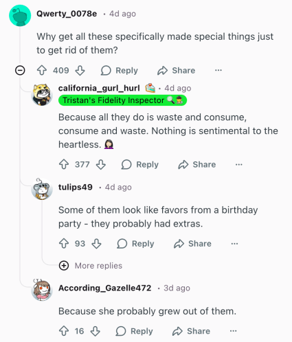 Um usuário do Reddit perguntou: “Por que comprar todas essas coisas especiais feitas especificamente apenas para se livrar delas?”